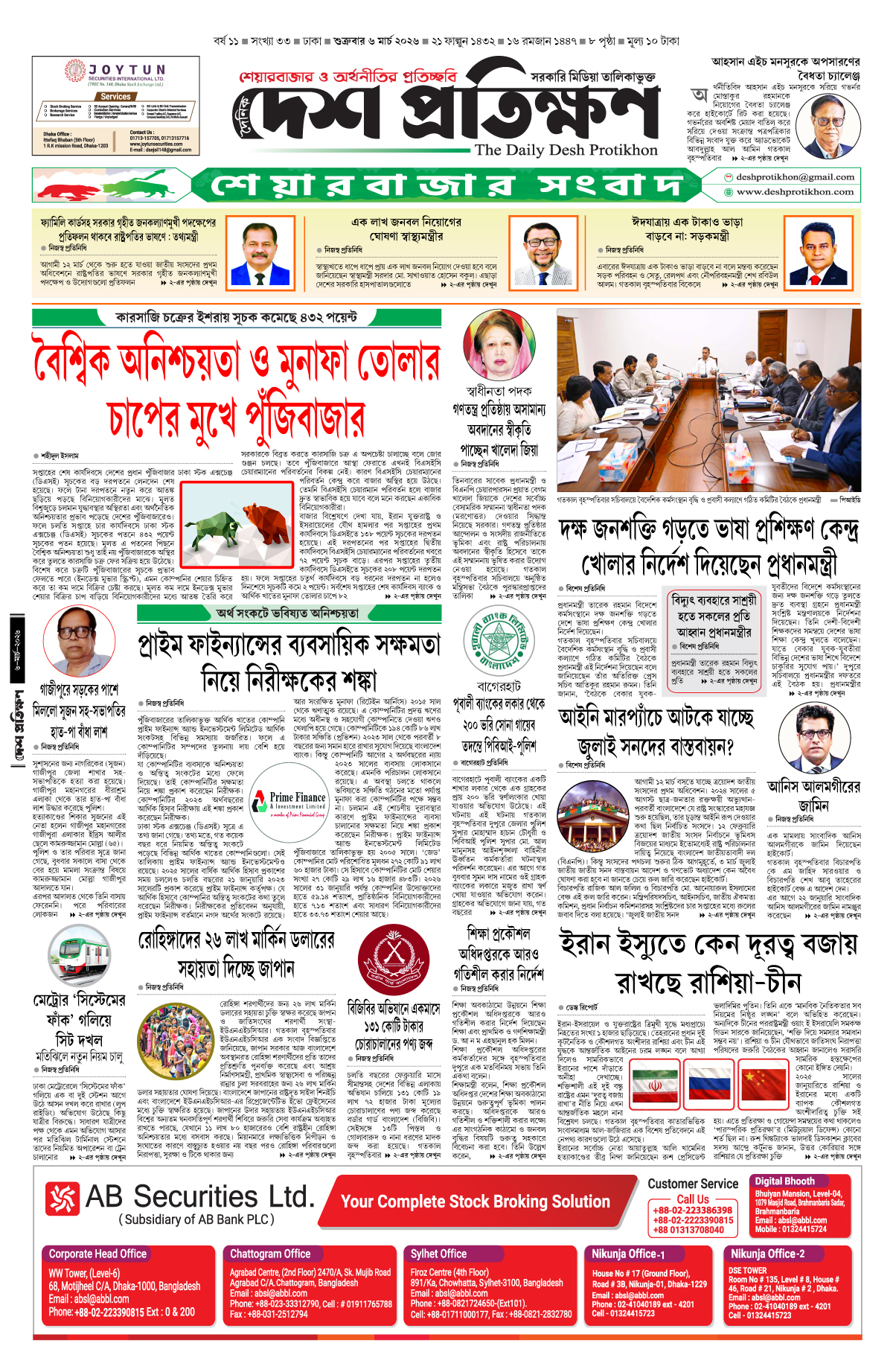 শহীদুল ইসলাম, স্পেশাল করেসপন্ডেন্ট, দেশ প্রতিক্ষণ, ঢাকা: সপ্তাহের শেষ কার্যদিবসে দেশের প্রধান পুঁজিবাজার ঢাকা স্টক এক্সচেঞ্জ (ডিএসই) সূচকের বড় দরপতনে লেনদেন শেষ হয়েছে। ফলে টানা দরপতনে নতুন করে আতঙ্ক ছড়িয়ে পড়ছে বিনিয়োগকারীদের মাঝে। মুলত বিশ্বজুড়ে...