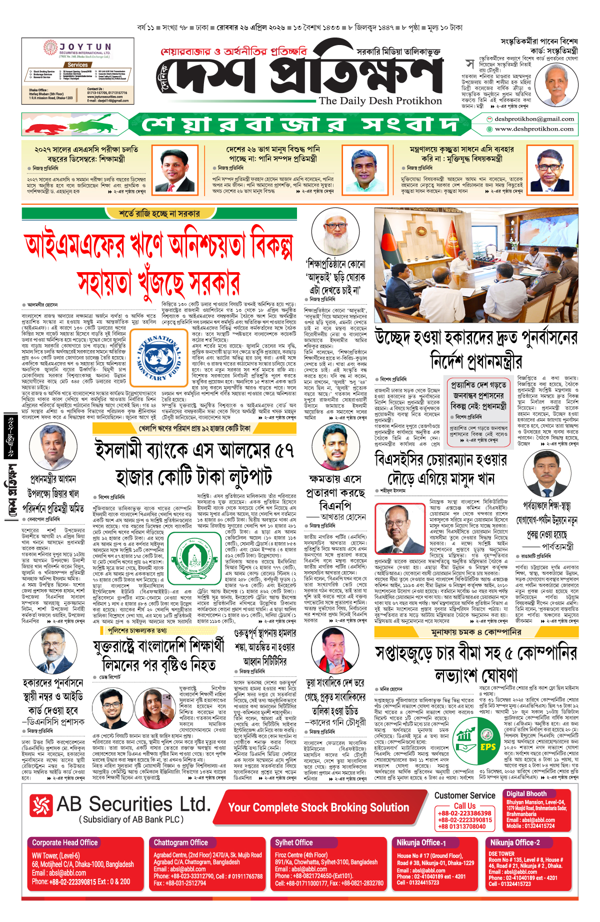 শহীদুল ইসলাম, স্পেশাল করেসপন্ডেন্ট, দেশ প্রতিক্ষণ, ঢাকা: টানা দরপতন ও লেনদেন খরা থেকে বেরিয়ে আসার আভাস দিচ্ছে পুঁজিবাজার। ফলে সপ্তাহজুড়ে দেশের প্রধান পুঁজিবাজার ঢাকা স্টক এক্সচেঞ্জ (ডিএসই) সূচকের কিছুটা উত্থানে টাকার পরিমাণে লেনদেন বেড়েছে। গত...