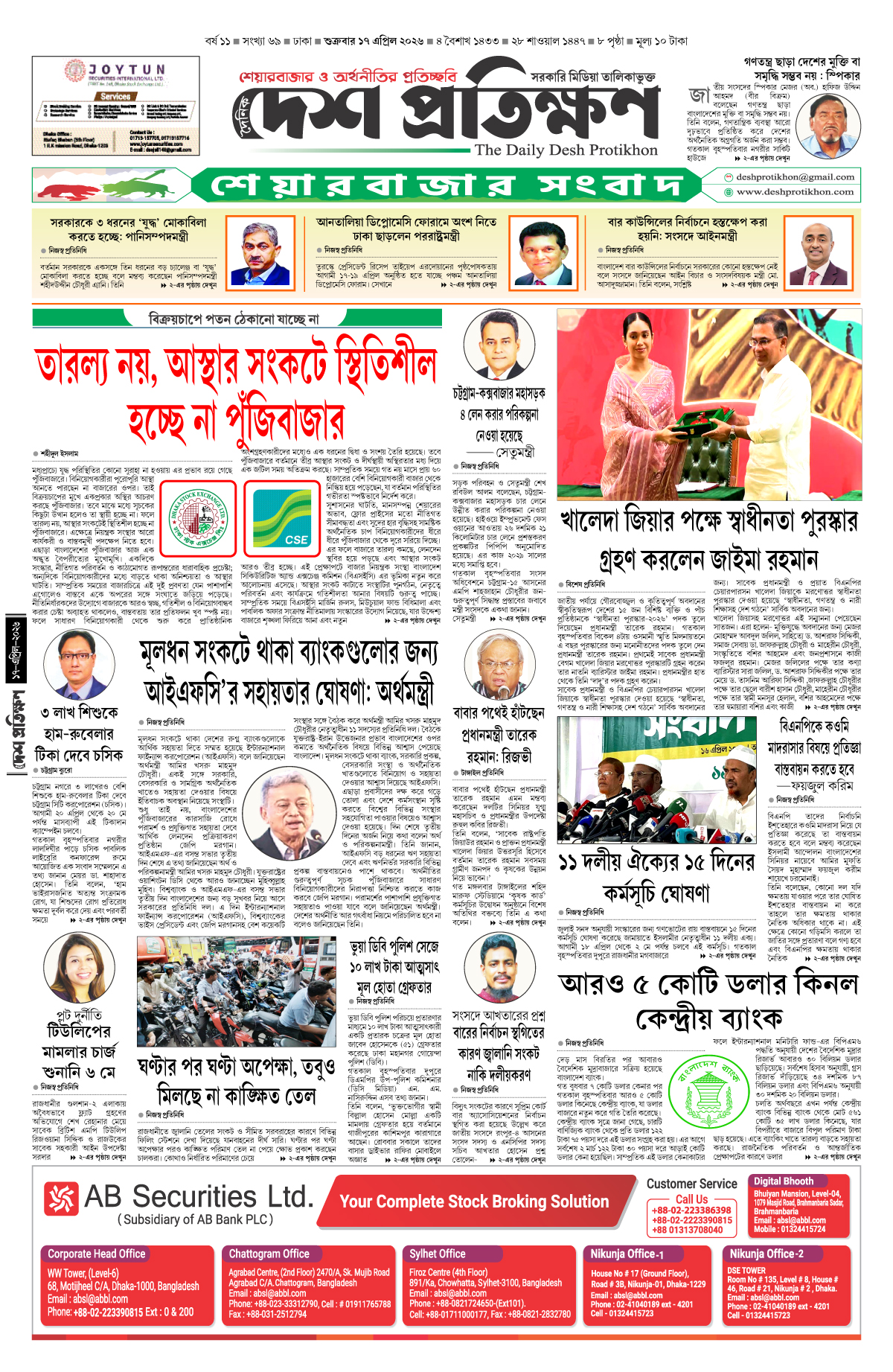 স্পেশাল করেসপন্ডেন্ট, দেশ প্রতিক্ষণ, ঢাকা: দেশের অর্থনীতির চালিকাশক্তি আর্থিকখাত। বিশেষ করে ব্যাংক ও পুঁজিবাজার। জুলাই বিপ্লবে শেখ হাসিনা সরকারের পতনের পর ব্যাংকিং খাতে নানামুখী সংস্কার ও পদক্ষেপের মাধ্যমে কিছুটা স্থিতিশীলতা ফিরিয়ে আনার চেষ্টা করা হলেও...