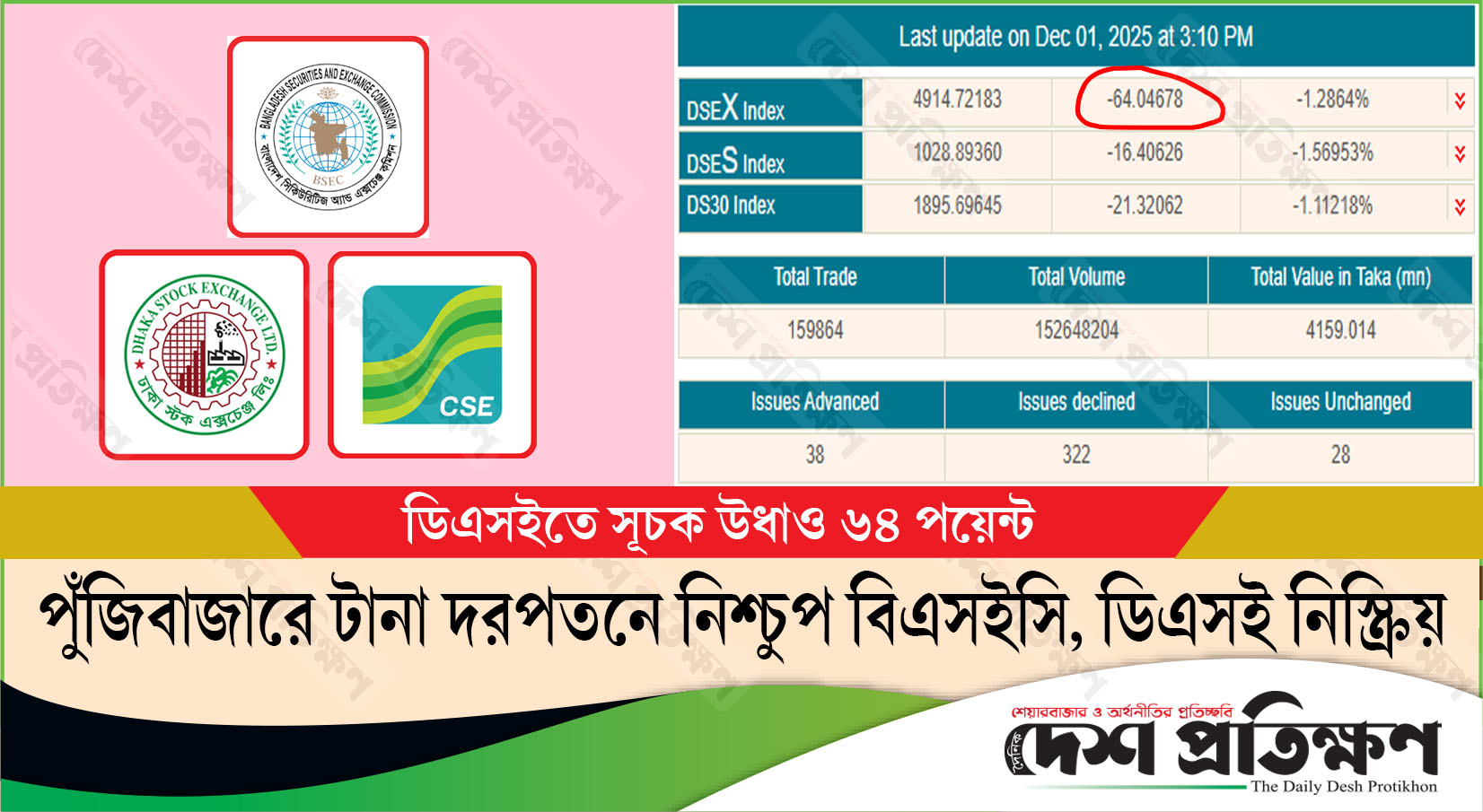 পুঁজিবাজারে টানা দরপতনে নিশ্চুপ বিএসইসি, ডিএসই নিস্ক্রিয়