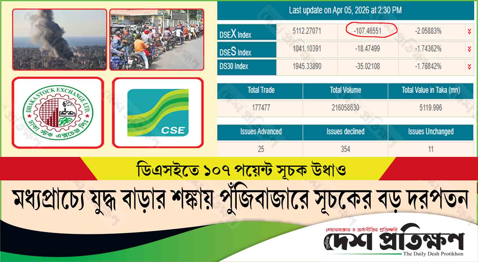 মধ্যপ্রাচ্যে যুদ্ধ বাড়ার শঙ্কায় পুঁজিবাজারে সূচকের বড় দরপতন, উধাও ১০৭ পয়েন্ট