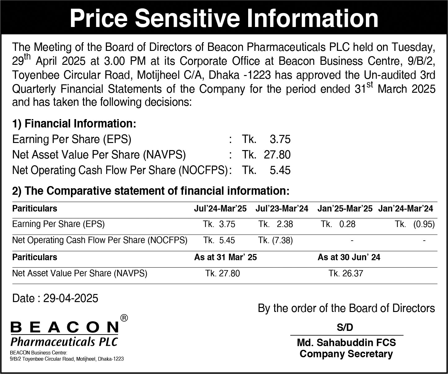 (3Q) Price Sensitive Information of Beacon Pharmaceuticals PLC.