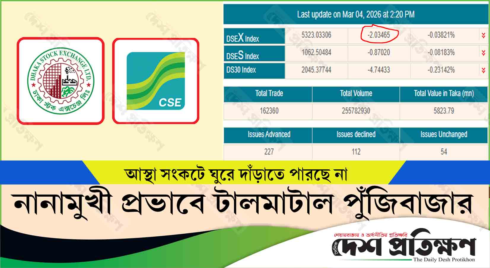 নানামুখী প্রভাবে টালমাটাল পুঁজিবাজার, আস্থা সংকটে ঘুরে দাঁড়াতে পারছে না