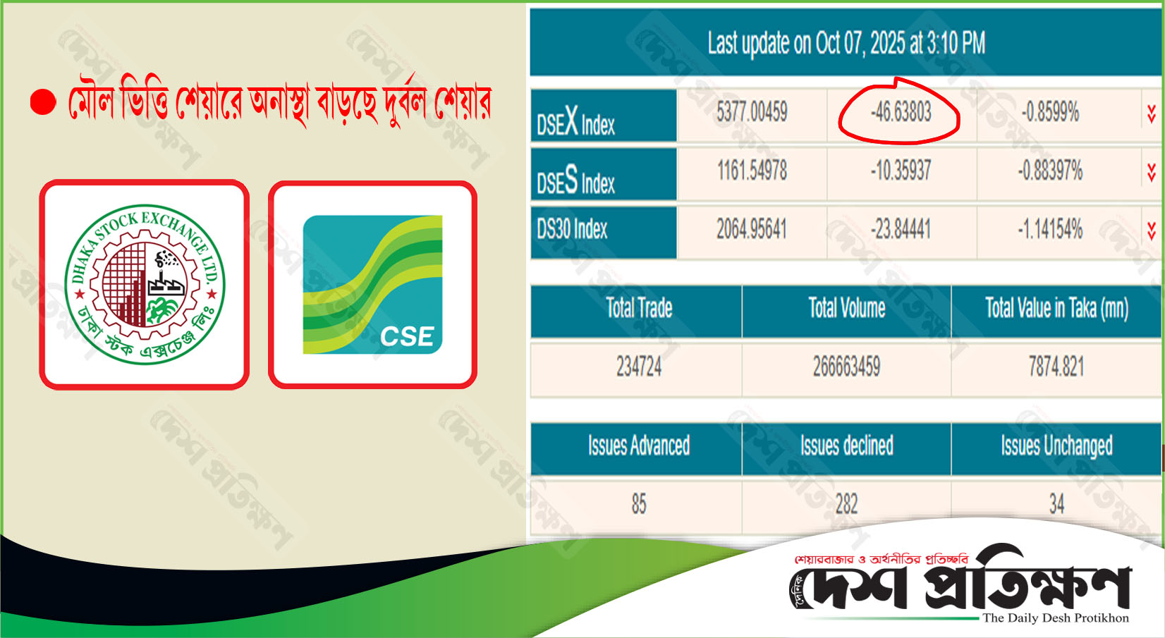 সপ্তাহজুড়ে পুঁজিবাজারে মূলধন উধাও ৮ হাজার ৯৩০ কোটি টাকা, বাড়ছে আস্থা সংকট