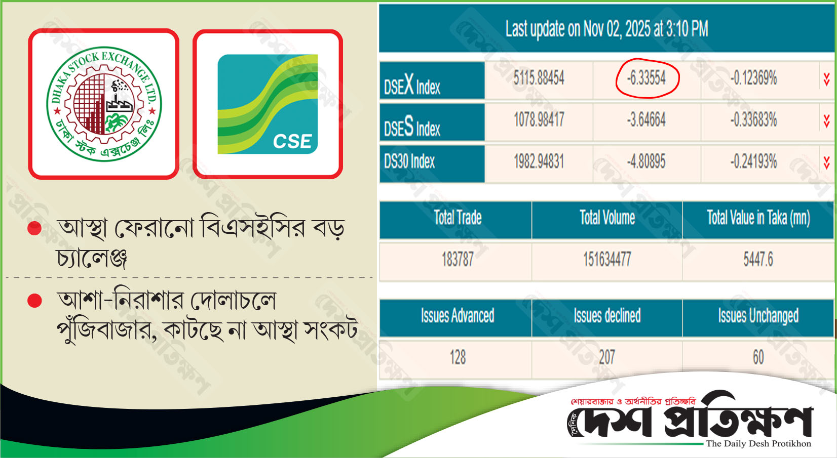 তিন ইস্যুতে টালমাটাল পুঁজিবাজার, আস্থা সংকট কাটেনি