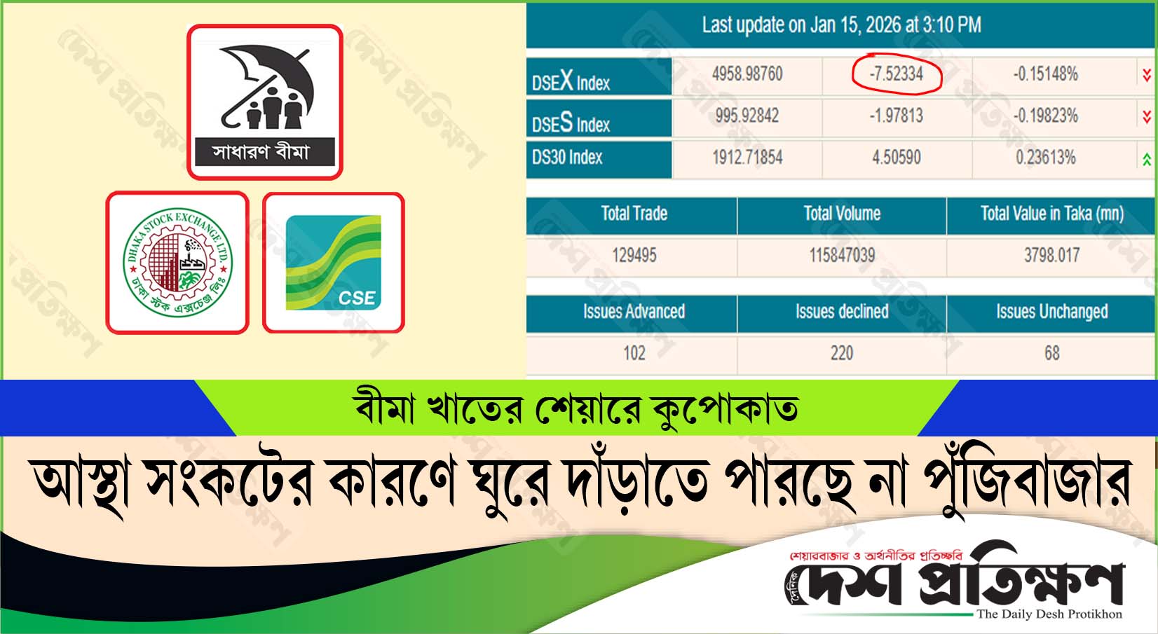 আস্থা সংকটের কারণে ঘুরে দাঁড়াতে পারছে না পুঁজিবাজার, বীমা খাতে কুপোকাত