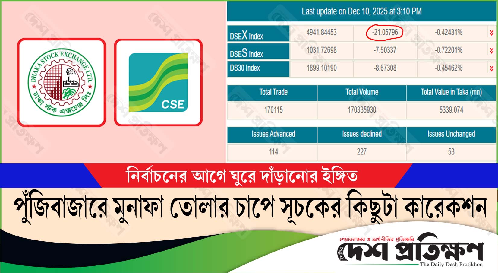 পুঁজিবাজারে মুনাফা তোলার চাপে সূচকের কিছুটা কারেকশন
