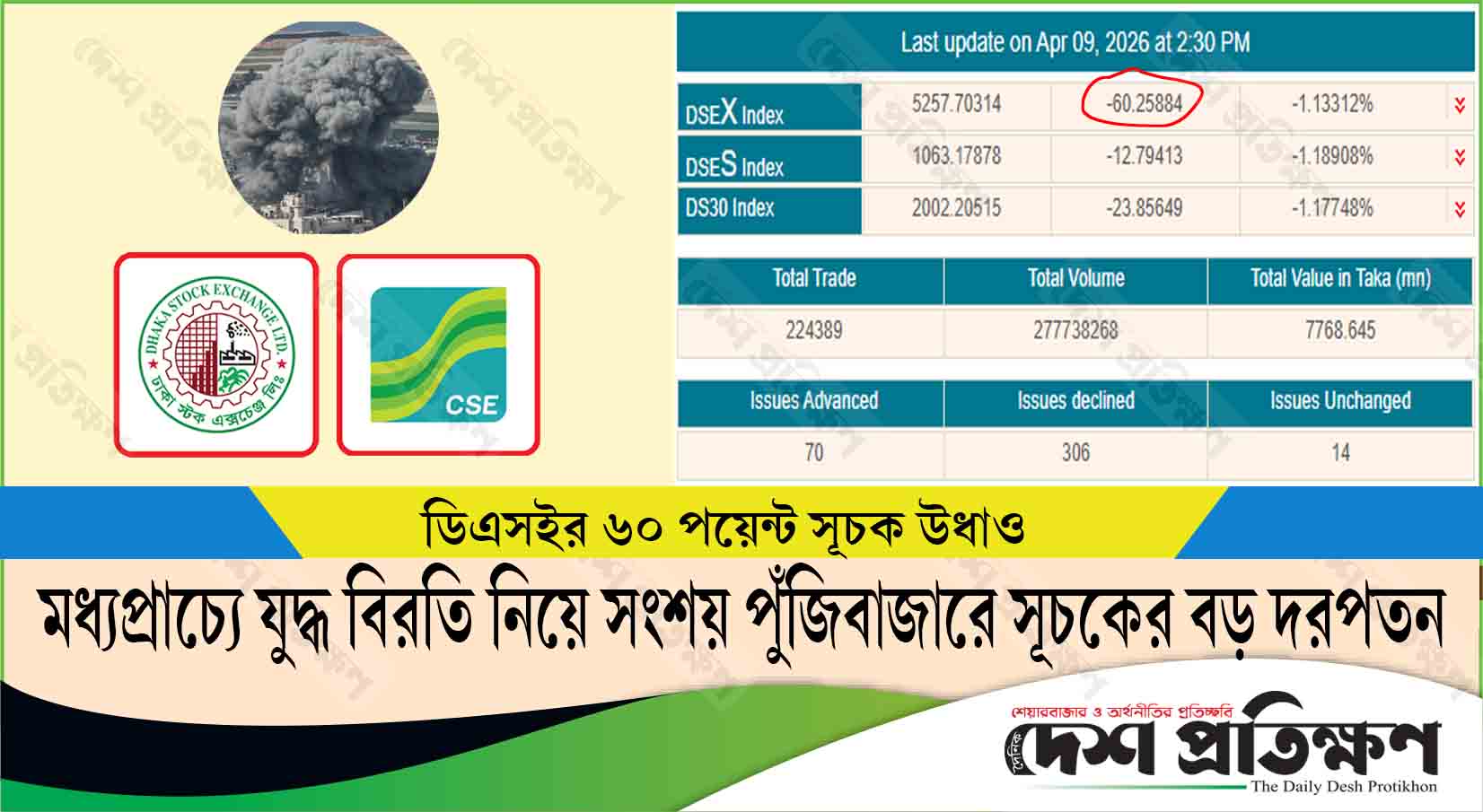 মধ্যপ্রাচ্য যুদ্ধের প্রভাবে পুঁজিবাজারে ২০৯ পয়েন্ট সূচকের দরপতন