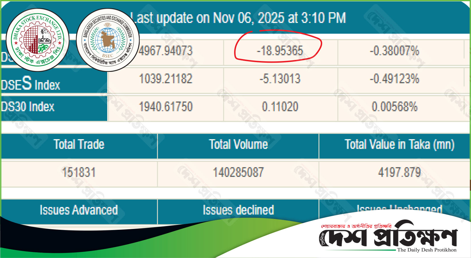 পুঁজিবাজারে টানা দরপতন ঠেকাতে ব্যর্থ নিয়ন্ত্রক সংস্থা, সূচক উধাও ৫৩ পয়েন্ট