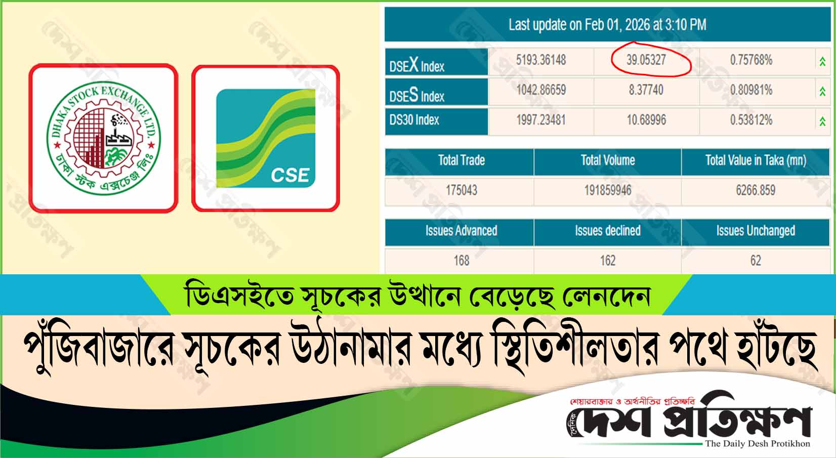 ডিএসইতে ৩৪ মাসের মধ্যে লেনদেনের রেকর্ড, পুঁজিবাজার স্থিতিশীলতার পথে হাঁটছে