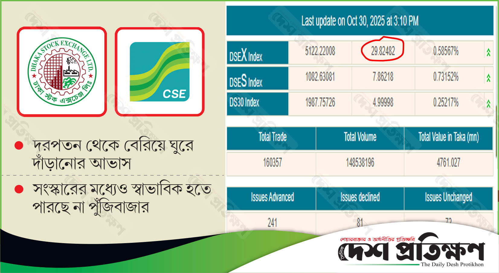 সংস্কারের মধ্যেও স্বাভাবিক হতে পারছে না পুঁজিবাজার, ঘুরে দাঁড়ানোর আভাস
