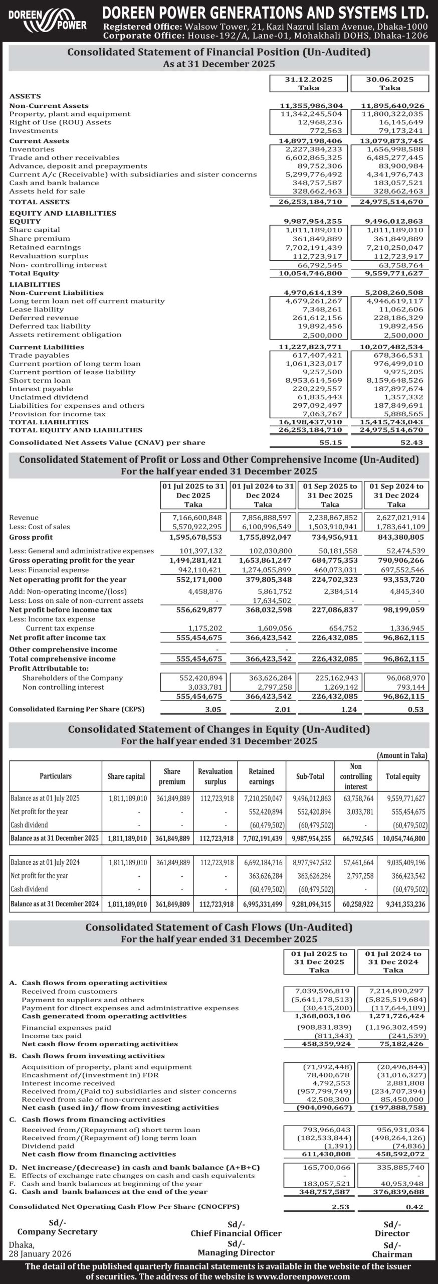 Un-Audited Financial Statements of Doreen Power Generations and Systems Limited