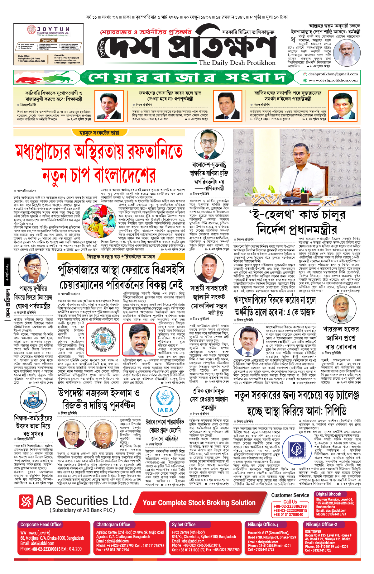 আলমগীর হোসেন, স্পেশাল করেসপন্ডেন্ট, দেশ প্রতিক্ষণ, ঢাকা: বছরের পর বছর চরম অনিয়ম ও অব্যবস্থাপনার শিকার দেশের পুঁজিবাজারে হঠাৎ আস্থা ও প্রত্যাশার ঝলকানি দিয়ে আবার যেন তা হাওয়ায়ই মিলে গেল। দীর্ঘ সময় ধরে অর্থনীতির সবচেয়ে গুরুত্বপূর্ণ...